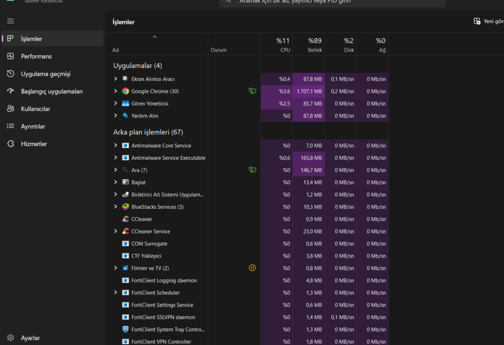 - Arka Plan Uygulamaları: Siz farkında olmadan çalışan ve sürekli veri işleyen programlar.