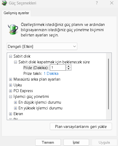 Bazen bilgisayarınızın güç planı, işlemcinin tam kapasiteyle çalışmasını engeller veya minimum çalışma durumunu %100’e sabitleyerek frekansın düşmesini önler.